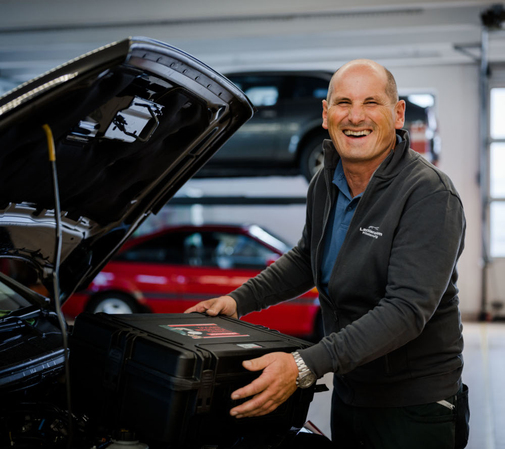 Der schwarze Werkzeugkoffer wird direkt in deine Werkstatt geliefert. Du reparierst. Am Tag nach Ende deiner Mietzeit holen wir den Werkzeugkoffer wieder ab. Und das alles ist in deinem Mietpreis enthalten.