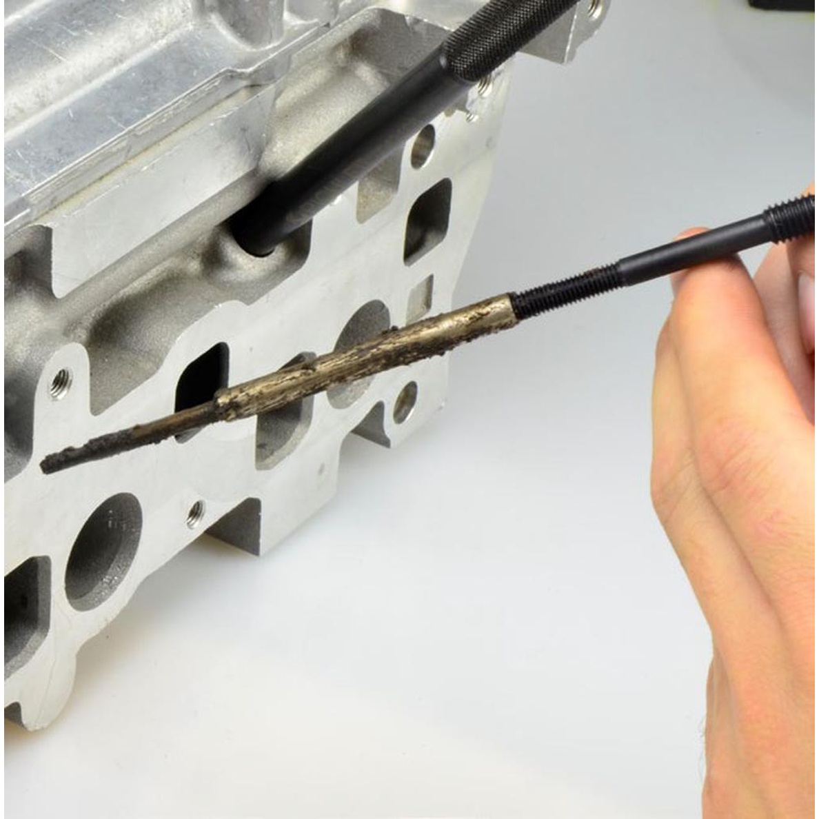 Durch die auf die beengten Platzverhältnisse abgestimmte Ausführung eignet sich der Satz auch für Arbeiten, bei denen herkömmliche Standard-Gewindebuchsen M10x1 konstruktionsbedingt nicht passen. So lässt sich nach dem Entfernen der defekten Glühkerze eine spezielle Gewindebuchse für VAG-Anwendungen einsetzen. Ideal für Werkstätten und erfahrene Anwender, die bei festsitzenden oder beschädigten Glühkerzen präzise und systemgerecht arbeiten möchten.