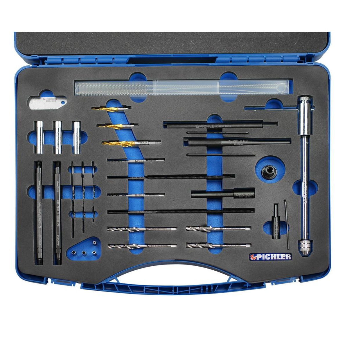 Universeller Pichler-Werkzeugsatz zum Entfernen gebrochener oder extrem festsitzender Glühkerzen aus dem Zylinderkopf. Der Satz ist besonders dann die passende Lösung, wenn bei der Demontage der Antriebs-Sechskant der Glühkerze abreißt und ein normales Herausdrehen nicht mehr möglich ist.